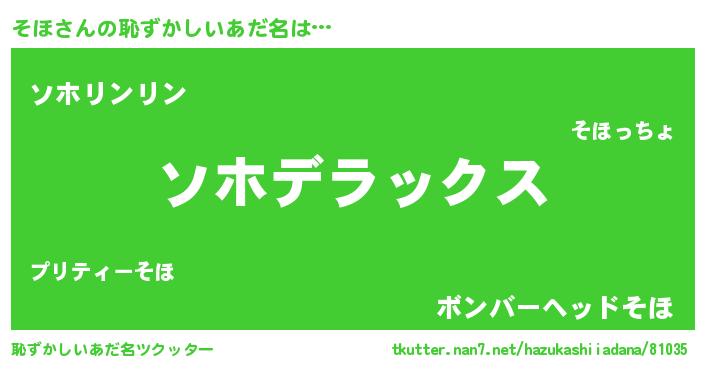 | ヘコむあだ名 | 『そほお』『豆乳』『そほもー』 |