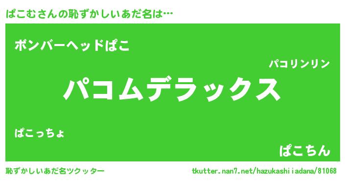 | ヘコむあだ名 | 『ぱこむ(苦笑)』『ぱこっ子』 |