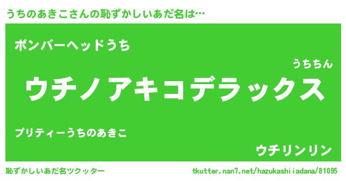| ヘコむあだ名 | 『うち太郎』『うちのあきこ(笑)』 |