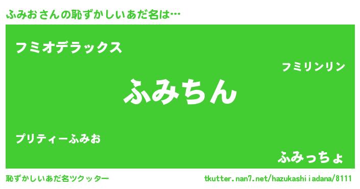 | 意味不明あだ名 | 『永久保存ふみお』『自称ふみお』 |