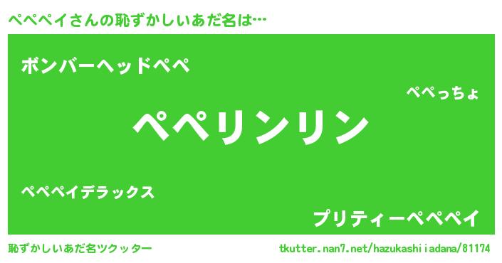 | 意味不明あだ名 | 『とにかく怪しいペペペイ』 |