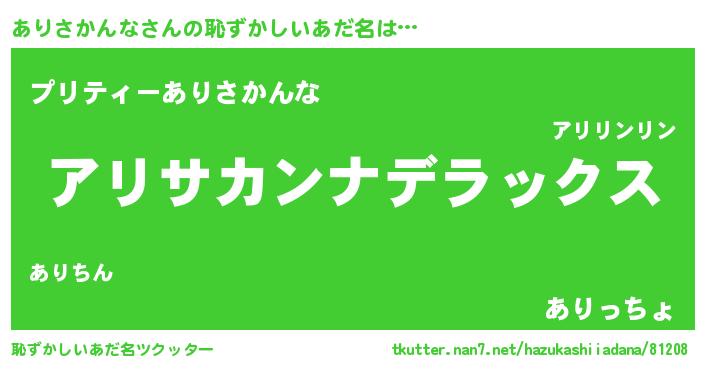 | 意味不明あだ名 | 『自称ありさかんな』 |