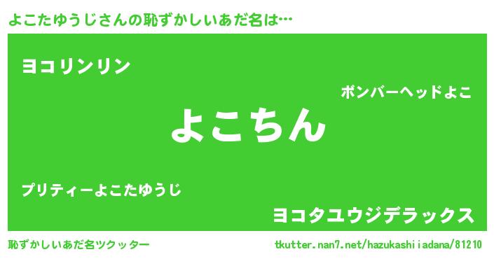 | ヘコむあだ名 | 『よこたゆうじ(笑)』『よこぷりん』 |