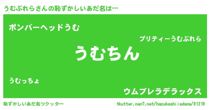 | 意味不明あだ名 | 『永久保存うむぶれら』『自称うむぶれら』 |