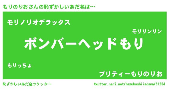 | ヒーロー風カッコイイあだ名 | 『慈愛の使者もりのりお』『黄金騎士モリ』 |