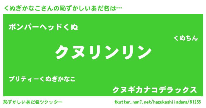 | ヘコむあだ名 | 『くぬっ子』『くぬぎかなこ(笑)』 |