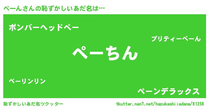 | 意味不明あだ名 | 『永久保存ぺーん』『めかぶ科ぺーん属』 |