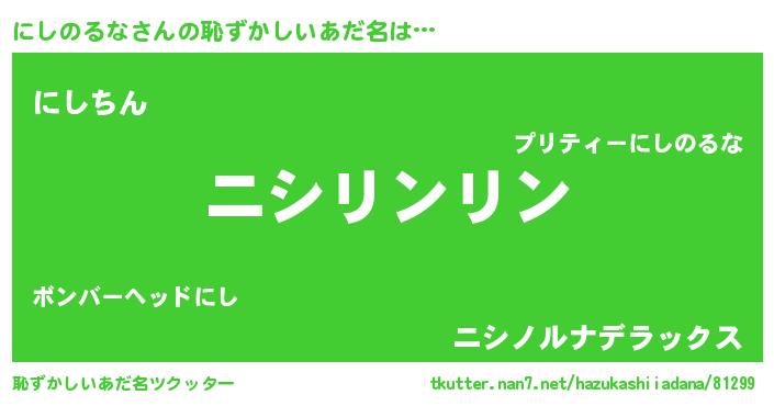 | ヘコむあだ名 | 『にしっぺ』『にしのるな(小並感)』 |