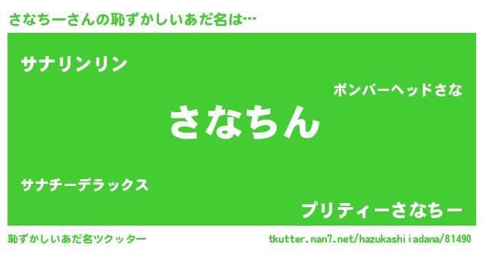| 男性向けラノベタイトル風あだ名 | 『この素晴らしい世界にさなちーを!』 |