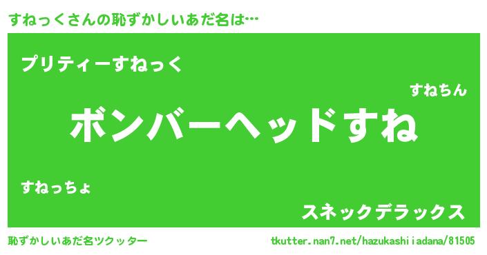 | ヒーロー風カッコイイあだ名 | 『慈愛の使者すねっく』『ネオスネック』 |