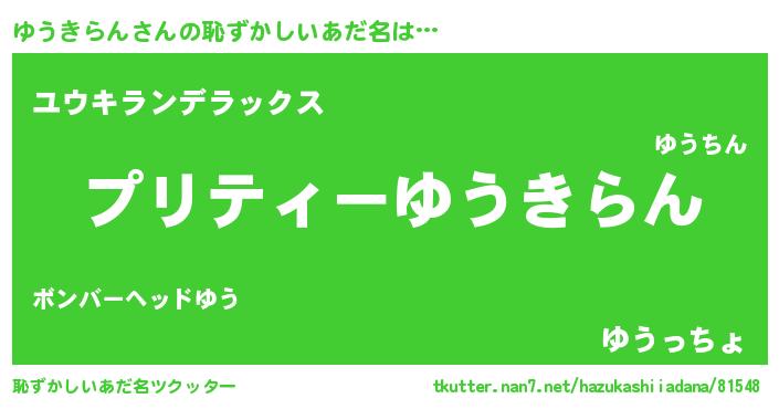| 意味不明あだ名 | 『ペロリンゆうきらん』『自称ゆうきらん』 |