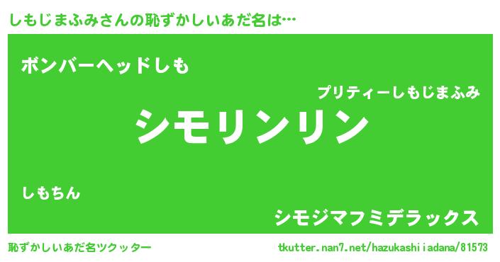 | 意味不明あだ名 | 『とにかく怪しいしもじまふみ』 |