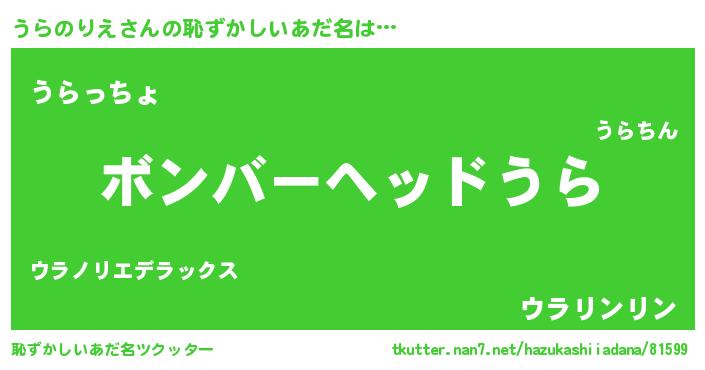 | 欧米人風あだ名 | 『うらのりえ・ステッグマイヤー』 |