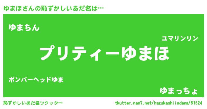 | ヘコむあだ名 | 『ゆまふぇ~』『ゆまほ(笑)』 |