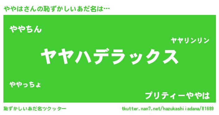 | 意味不明あだ名 | 『自称ややは』『永久保存ややは』 |