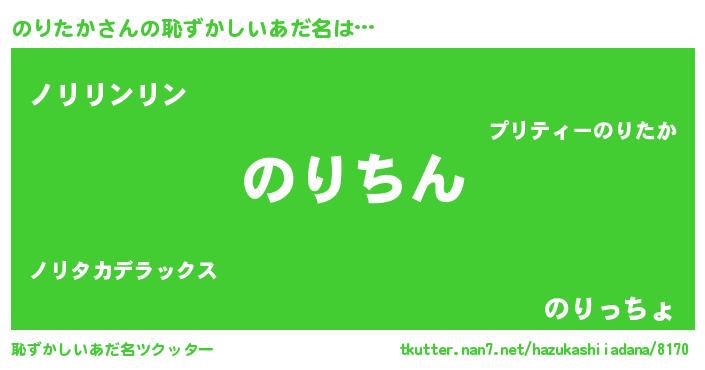 | 意味不明あだ名 | 『永久保存のりたか』『ペロリンのりたか』 |