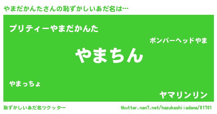 | ヘコむあだ名 | 『やまだかんた(苦笑)』『やまにー』 |