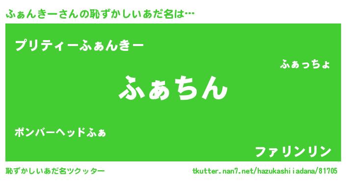 | ヘコむあだ名 | 『ふぁんきー(震え声)』『ふぁにー』 |