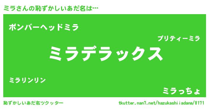 | 可愛いあだ名 | 『ミラうちぇる』『ミラちゅっちゅ』 |