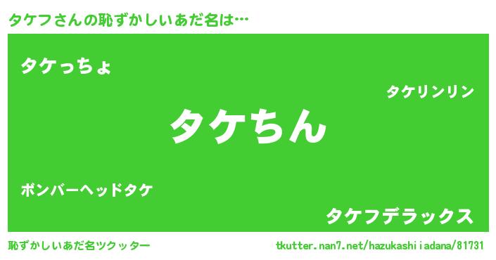 | 意味不明あだ名 | 『永久保存タケフ』『タケフフォーエバー』 |