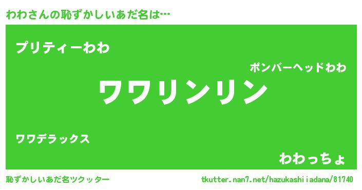 ポケモン風あだ名 | 『ヒワワ』『ワワチュウ』『ワワゴンZ』 |