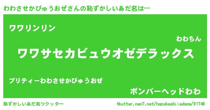 | ポケモン風あだ名 | 『ワワセウス』『ヒワワサセカビュウオゼ』 |