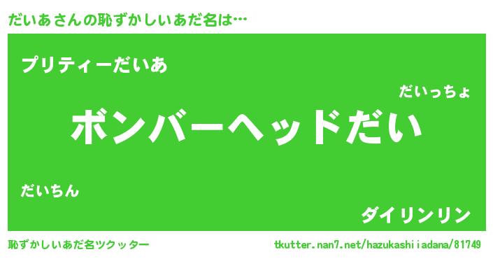 | ヘコむあだ名 | 『だいにゅー』『だい太郎』 |