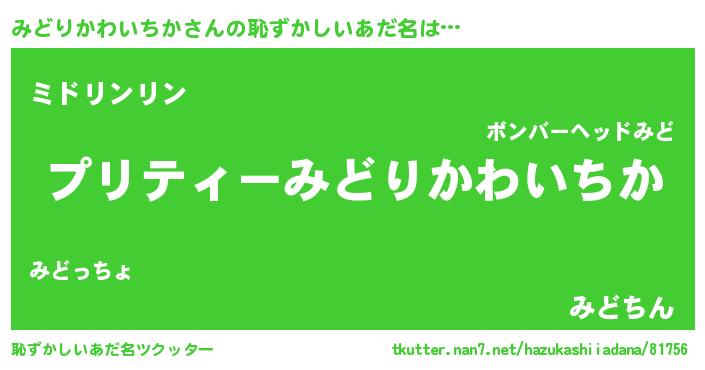 | ポケモン風あだ名 | 『ミドチュウ』『ヒミドリカワイチカ』 |