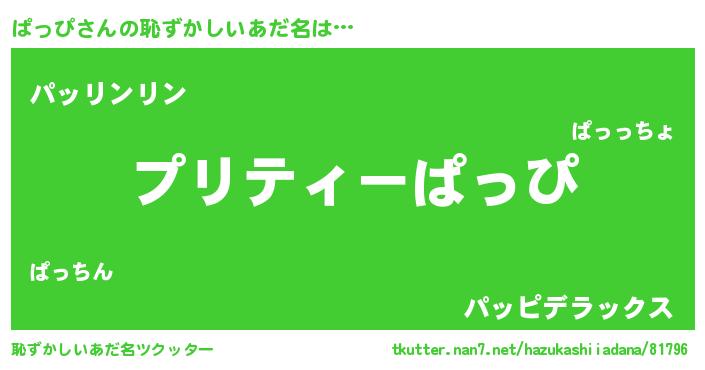| 意味不明あだ名 | 『ペロリンぱっぴ』『自称ぱっぴ』 |