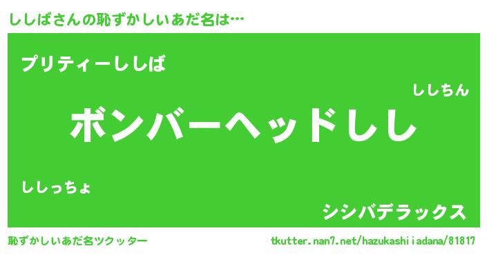 | ヘコむあだ名 | 『ししにー』『ししば(笑)』『ししを』 |
