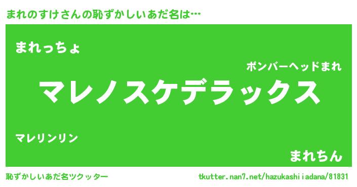 | 意味不明あだ名 | 『自称まれのすけ』『永久保存まれのすけ』 |