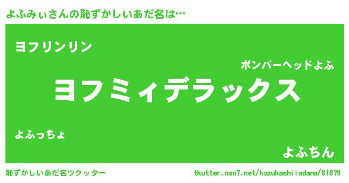 | 意味不明あだ名 | 『自称よふみぃ』『永久保存よふみぃ』 |