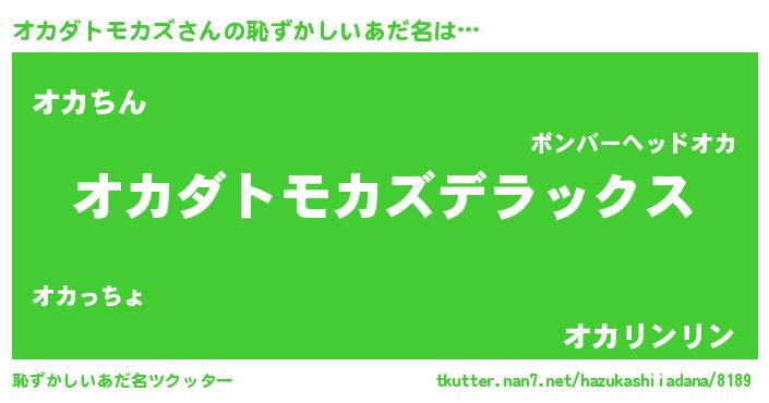 | 男性向けラノベタイトル風あだ名 | 『この素晴らしい世界にオカダトモカズを!』 |