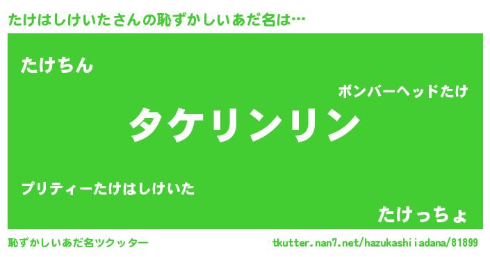 | ポケモン風あだ名 | 『ヒタケハシケイタ』『タケキング』 |