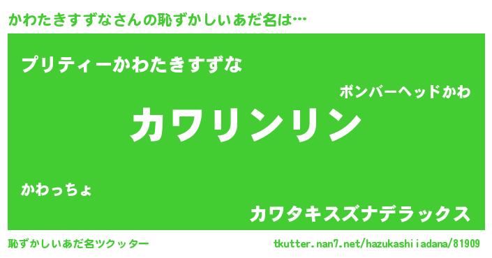 | 胡散臭い通販商品みたいなあだ名 | 『伝統あるサプリメント…その名も「かわたきすずな」』 |