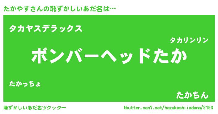 | ヒーロー風カッコイイあだ名 | 『正義の使者たかやす』『仮面タカダー』 |