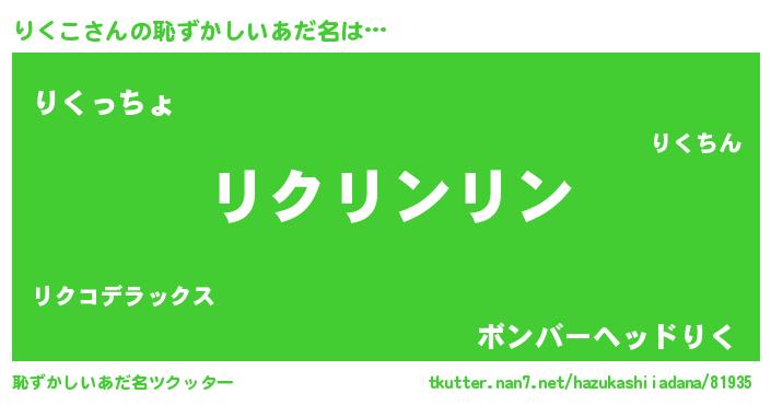 | 意味不明あだ名 | 『ニラ科りくこ属』『りくこフォーエバー』 |