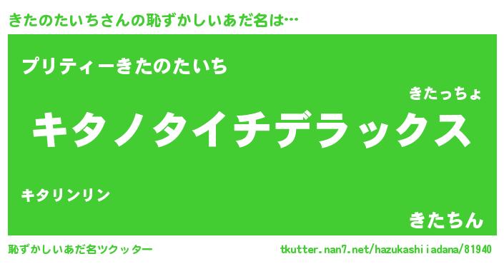 | ヒーロー風カッコイイあだ名 | 『最強戦士キタノタイチ』『仮面キタダー』 |