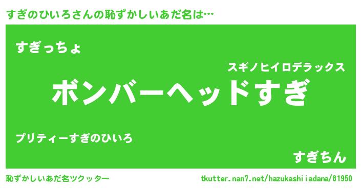 | ヘコむあだ名 | 『酢こんぶ』『すぎのひいろ(笑)』 |