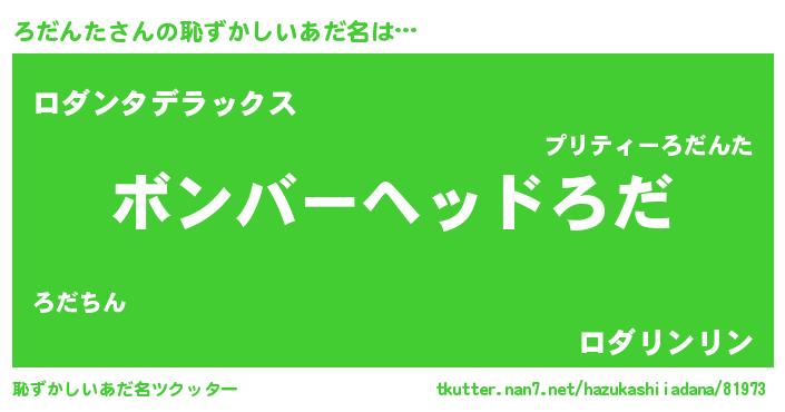 | 欧米人風あだ名 | 『ダニエルろだんた』『ウサインろだんた』 |