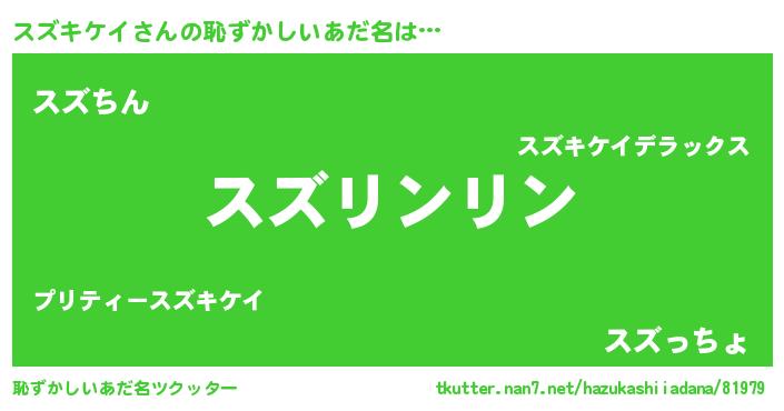| ヘコむあだ名 | 『スズお』『スズキケイ(笑)』 |