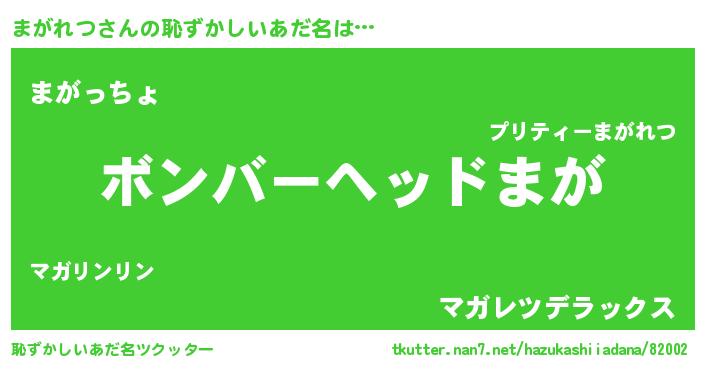 | ヘコむあだ名 | 『牛乳』『まがもー』『まがを』 |