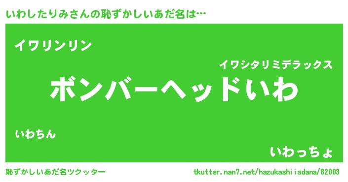 | ヘコむあだ名 | 『いわ太郎』『牛乳』『いわにゅー』 |