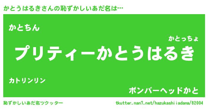 | ヘコむあだ名 | 『かとふぇ~』『かとうはるき(遠い目)』 |