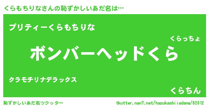| 男性向けラノベタイトル風あだ名 | 『この素晴らしい世界にくらもちりなを!』 |
