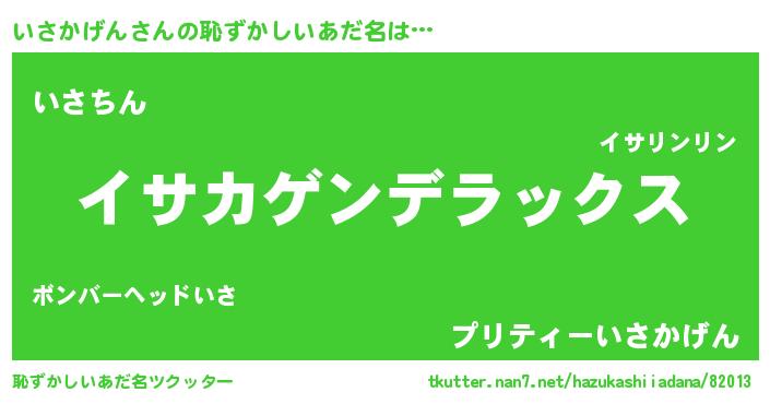 | 意味不明あだ名 | 『自称いさかげん』『永久保存いさかげん』 |