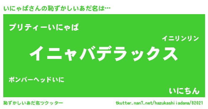 | 意味不明あだ名 | 『自称いにゃば』『めかぶ科いにゃば属』 |