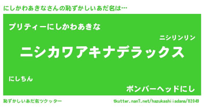 | 女子向けラノベタイトル風あだ名 | 『にしかわあきななんてお断りですっ。』 |
