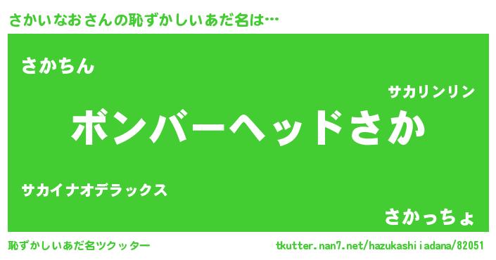 | ヒーロー風カッコイイあだ名 | 『天空の使者さかいなお』『仮面サカダー』 |