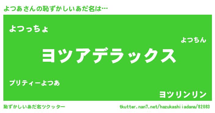 | 欧米人風あだ名 | 『アンジェラ・よつあ』『ウサインよつあ』 |